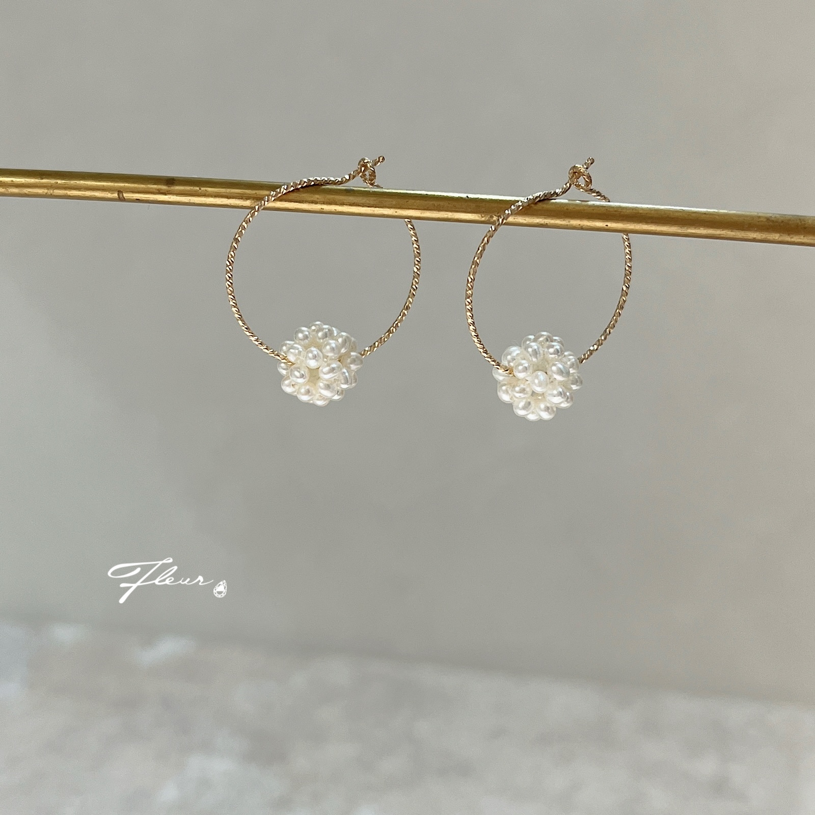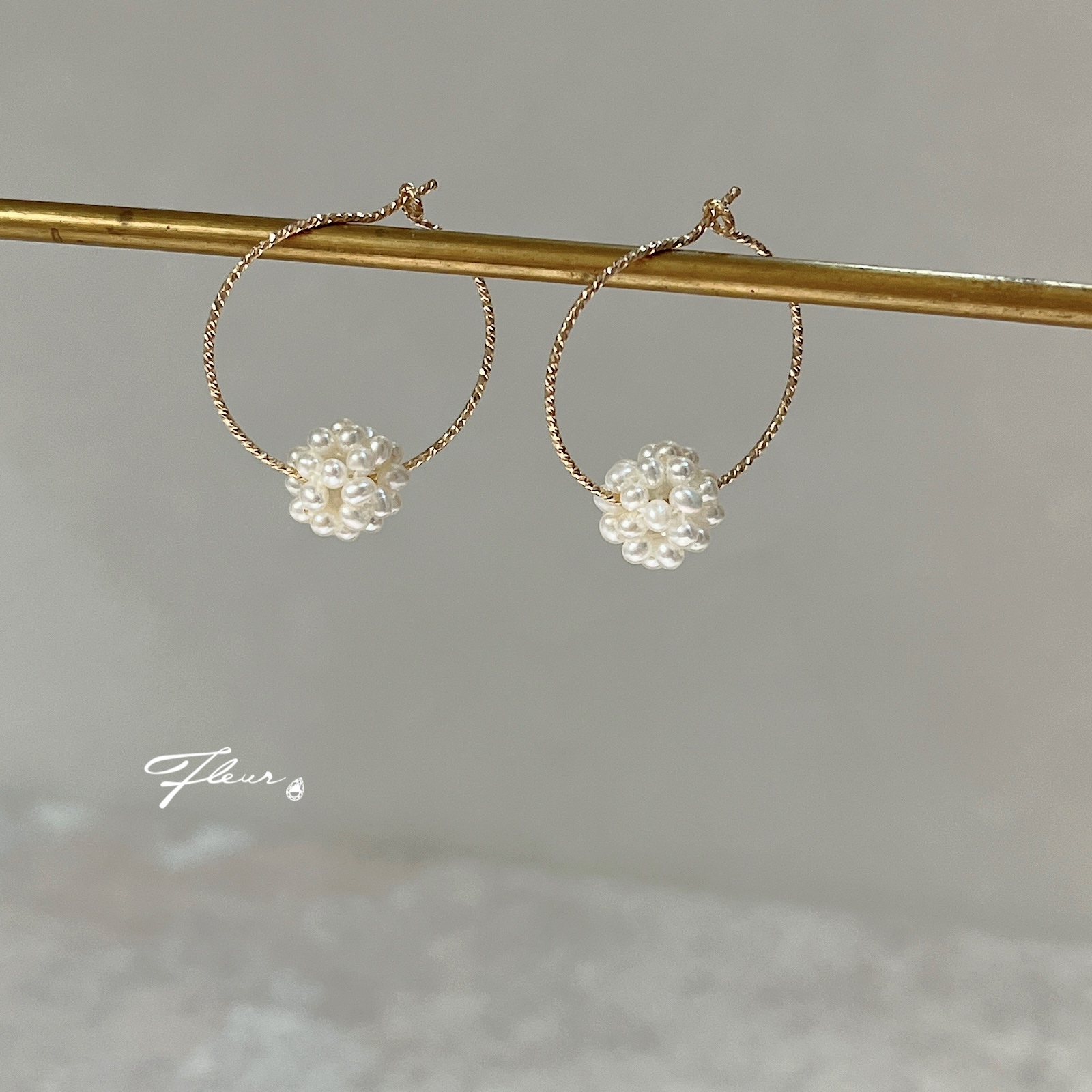 | 品項說明 | Fleur手作輕珠寶飾品-珍珠花球耳環 – 大圈 |