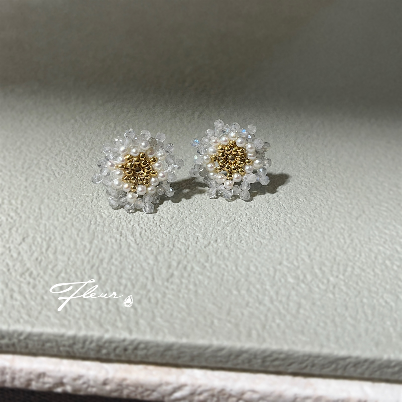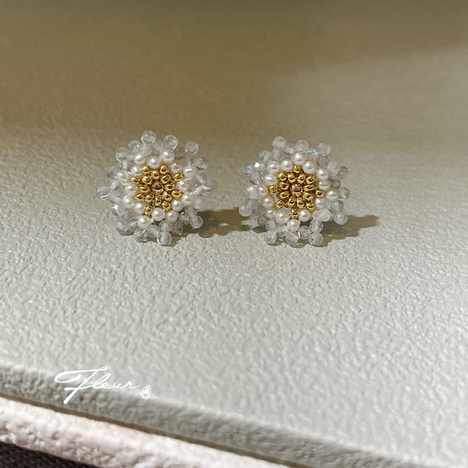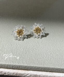 | 品項說明 | Fleur手作輕珠寶飾品-花形寶石編織耳針式耳環 – 山茶花 |