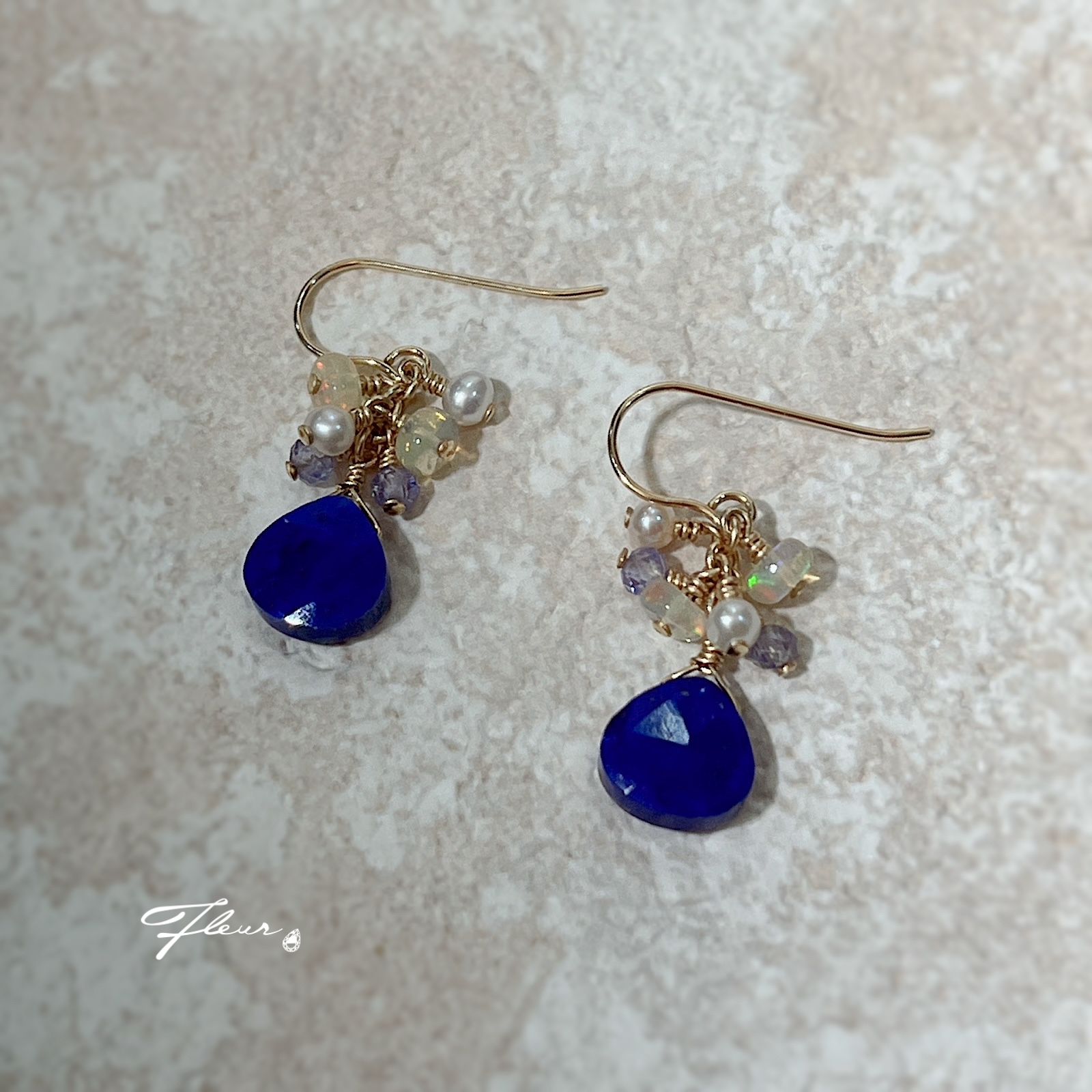 素材 | 美國14KGF(1/20Gold)、青金石、蛋白石、珍珠、坦桑石 |